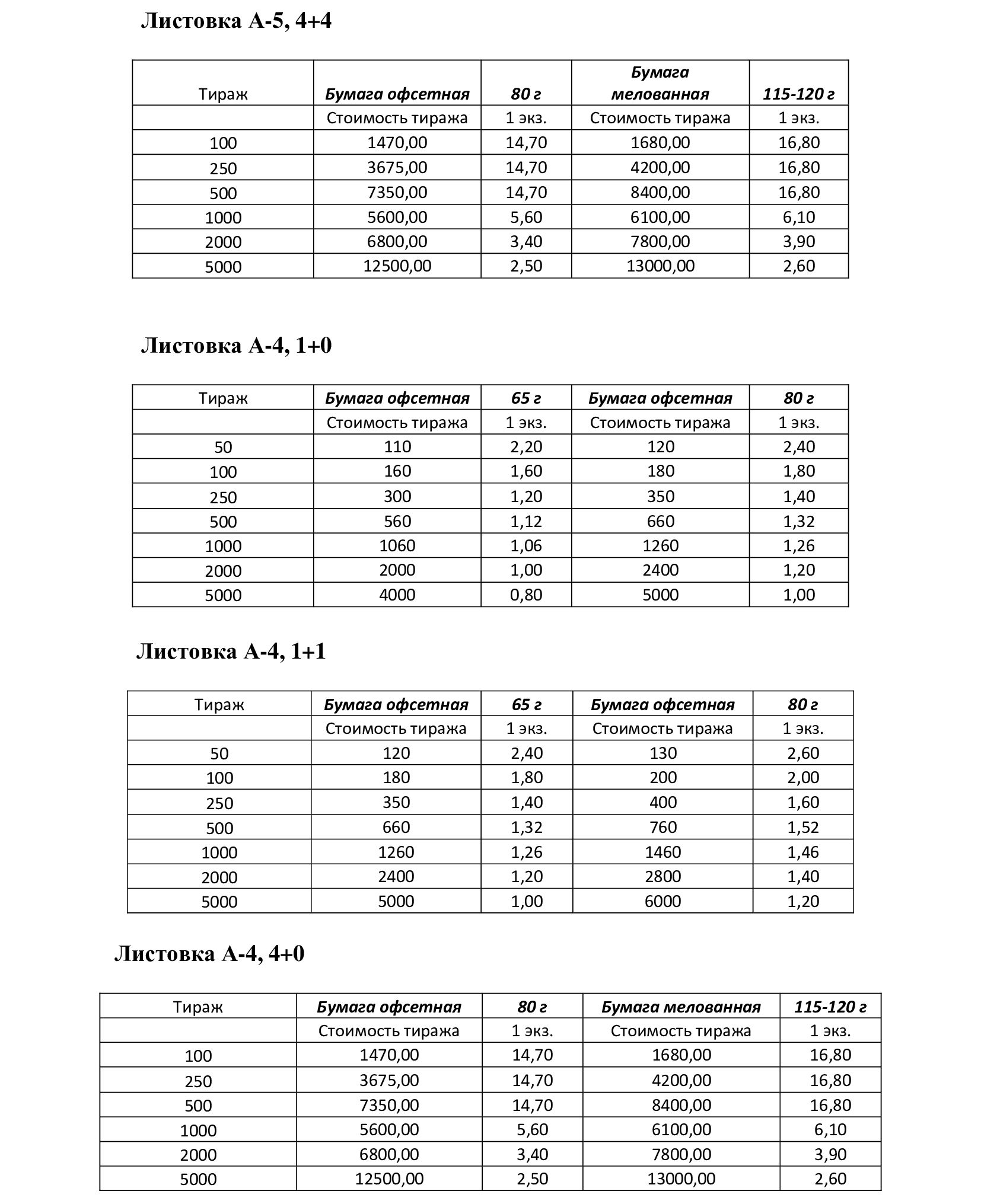 Расценки