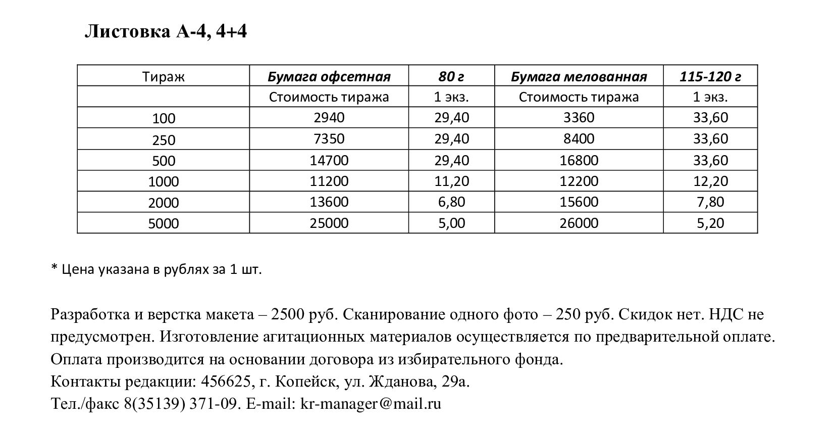 Посмотреть расценки АНО «Редакция газеты «Копейский рабочий» 456625, Челябинская обл., г. Копейск, ул. Жданова, 29 А